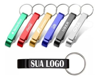 chaveiro abridor de metal, resistente, elegante e perfeito para brindes corporativos. Disponível em